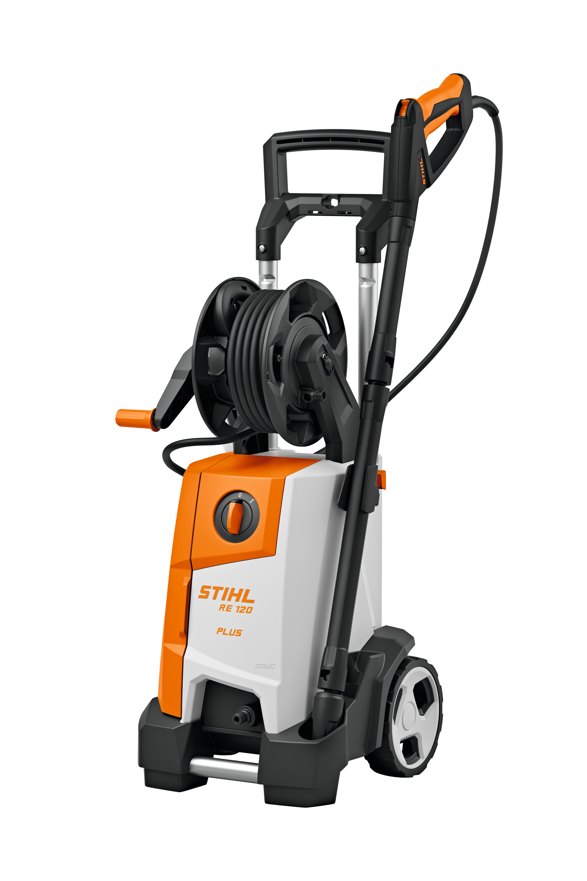 A STIHL RE 120 könnyű és kompakt kialakítású elektromos nagynyomású mosó a ház körül és a kertben végzett tisztítási munkákhoz. Alkalmas autók, kerti bútorok, lépcsők, utak és teraszok hatékony tisztítására. A hosszú élettartamú indukciós motorral és magas minőségű alumínium pumpafejjel rendelkező mosó maximum 160 bar nyomással működik. A 8 méter hosszú nagynyomású tömlő a gyorscsatlakozók segítségével egyszerűen csatlakoztatható a géphez és a pisztolyhoz is. A csavarodásmentes tömlőcsatlakozás a pisztolyon meggátolja a tömlő felcsavarodását. Alapfelszereltségben két különböző fúvókáva: az állítható lapos fúvóka a kényesebb felületek gyors tisztítására, a rotorfúvóka pedig a makacs szennyeződések hatékony eltávolítására alkalmas, a fúvókák egyszerűen cserélhetők. A még jobb hatás érdekében az alapfelszereltséghez tartozó tisztítószerszóró készlet használatát ishasználható. Az állítható hosszúságú alumínium fogantyúnak, a szállítási fogantyúnak és a kerekeknrk köszönhetően a gép tárolása és szállítása könnyen és helytakarékosan megoldható.